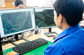 *森林管理ソフト、衛星を活用した測量機器、ドローンなどを活用して、山林を管理します。
