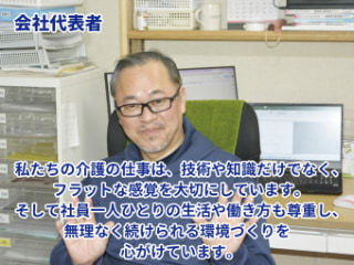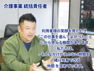 訪問介護を通じて、ご利用者に寄り添いながら、自分の成長とやりがいも実感できる職場です。
