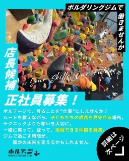 『ボルテージ ボルダリングジム』での店長候補の募集です。